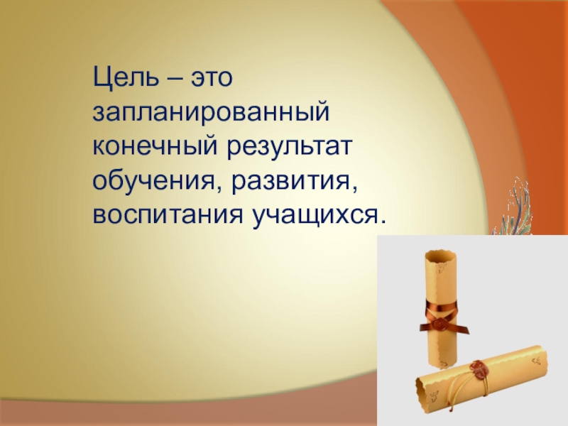 Слайд 5Цель – это запланированный конечный результат обучения, развития, воспитания учащихся.