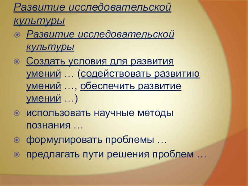 Создать условия для развития умений … (содействовать развитию умений …, обеспечить