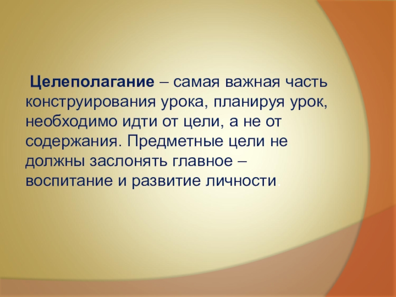 Целеполагание – самая важная часть конструирования урока, планируя урок, необходимо идти от
