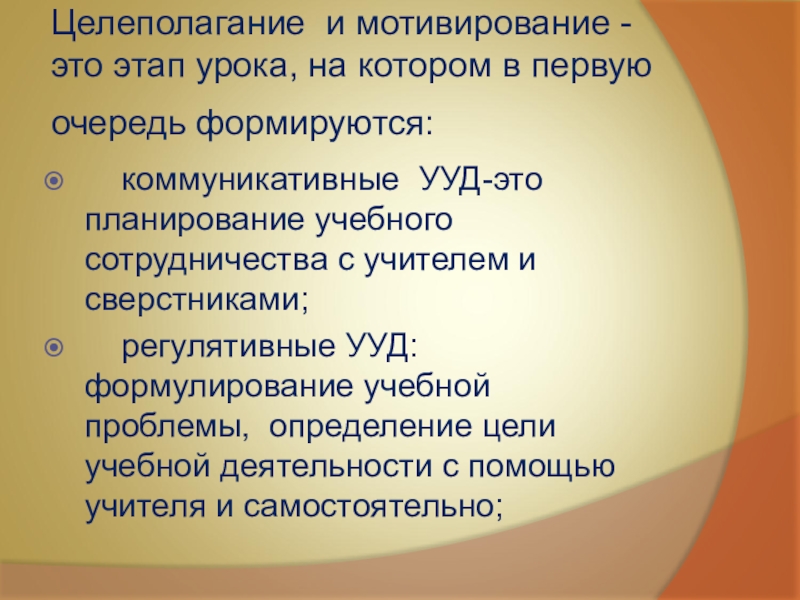 Слайд 30Целеполагание и мотивирование - это этап урока, на котором в первую