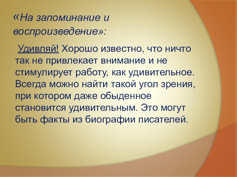 и не стимулирует работу, как удивительное. Всегда можно найти такой угол зрения, при котором даже обыденное становится удивительным. Это могут быть факты из биографии писателей.