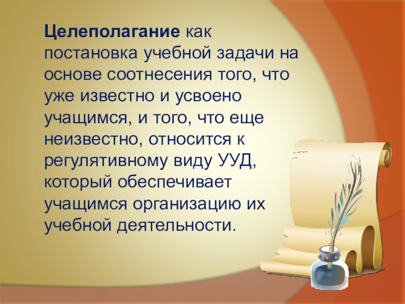 Слайд 4Целеполагание как постановка учебной задачи на основе соотнесения того, что уже известно