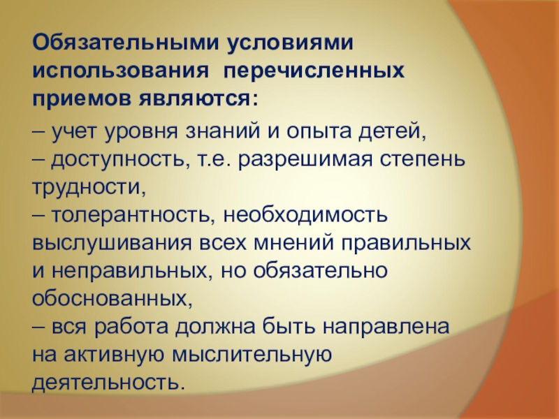 – вся работа должна быть направлена на активную мыслительную деятельность.