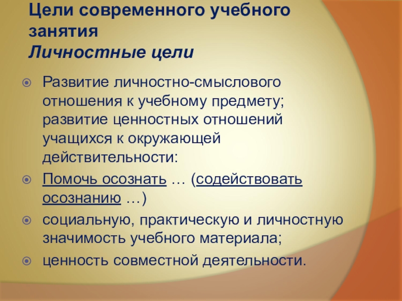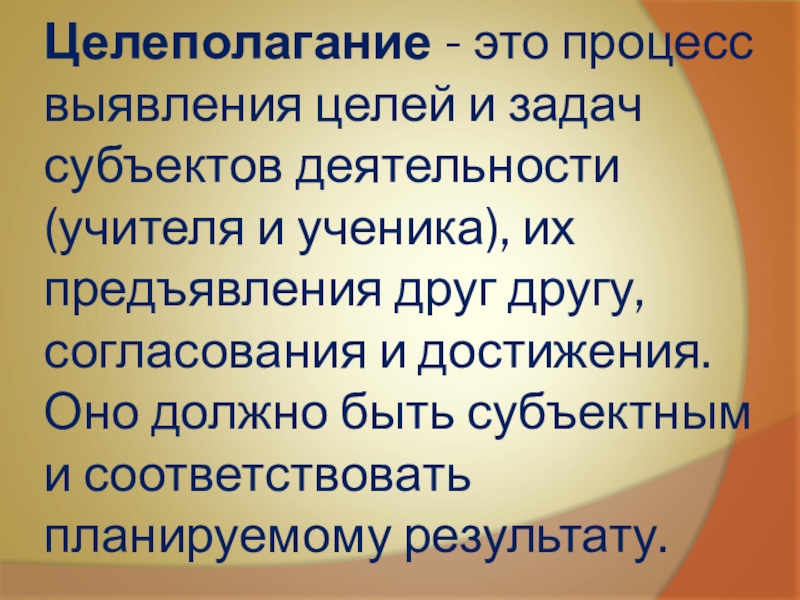 ученика), их предъявления друг другу, согласования и достижения. Оно должно быть субъектным и соответствовать планируемому результату.
