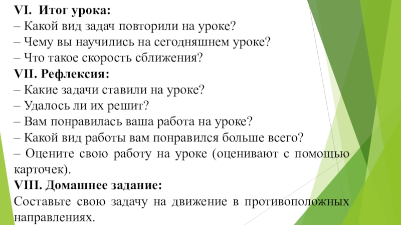 6. тренироваться составлять и решать задачи на одновременное движение в противоположных направлениях.