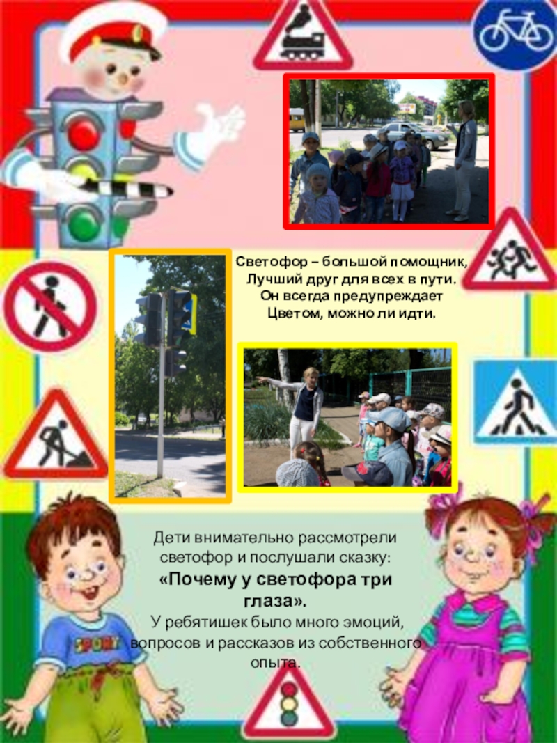 Дети внимательно рассмотрели светофор и послушали сказку: