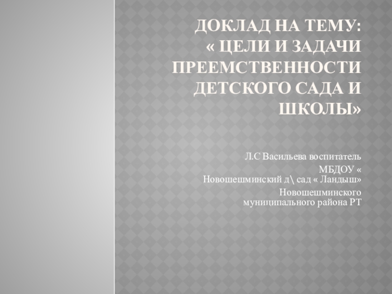 МБДОУ « Новошешминский д\ сад « Ландыш»