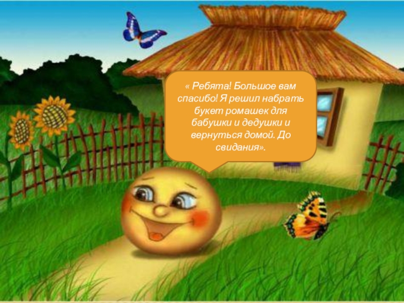 « Ребята! Большое вам спасибо! Я решил набрать букет ромашек для бабушки и дедушки и вернуться домой.