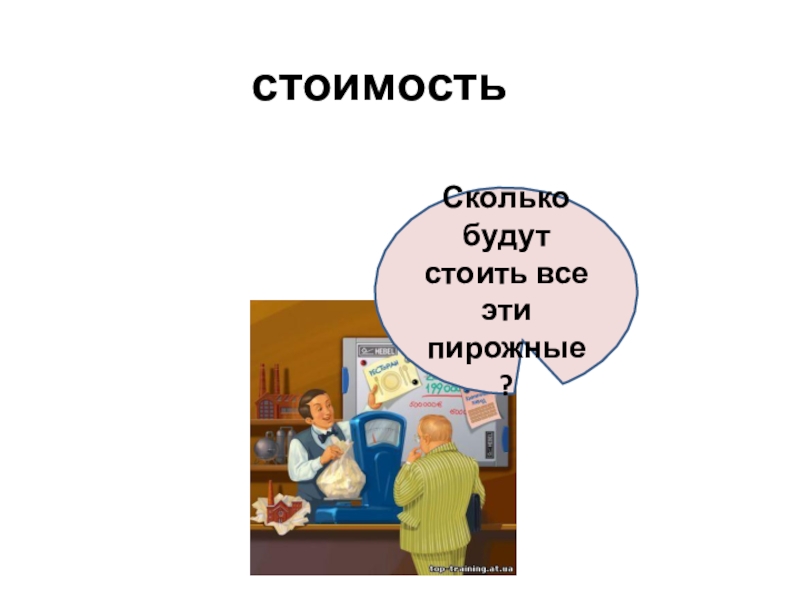 Слайд 3О чём спрашивает покупатель: о цене, о количестве или о стоимости?