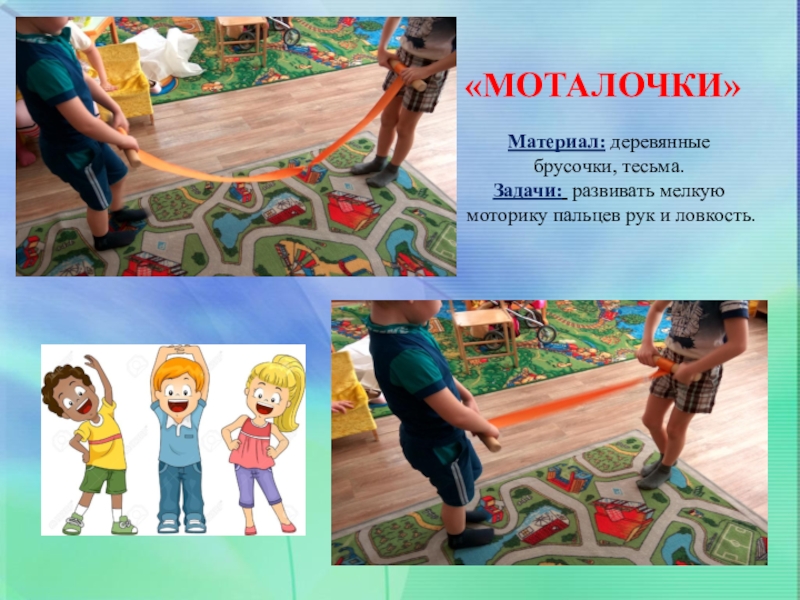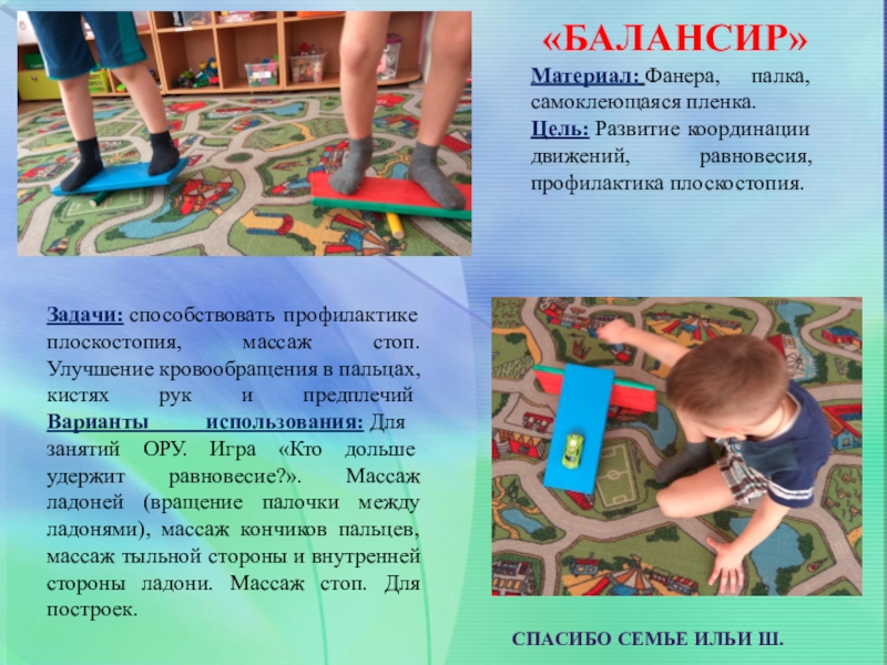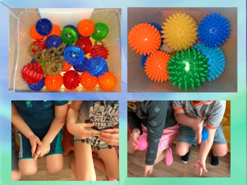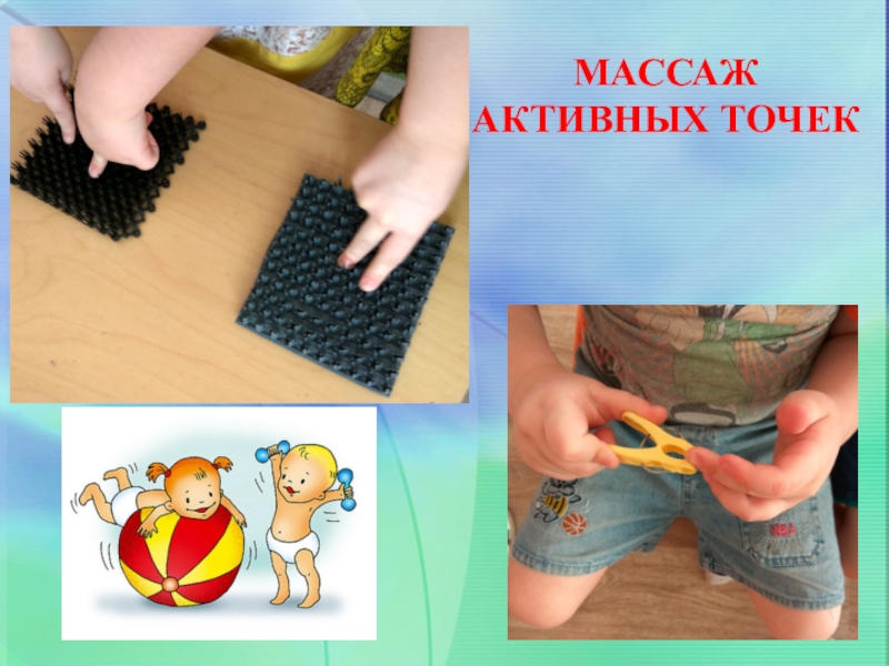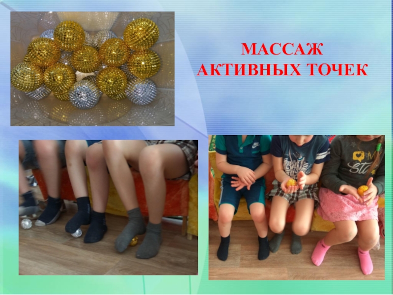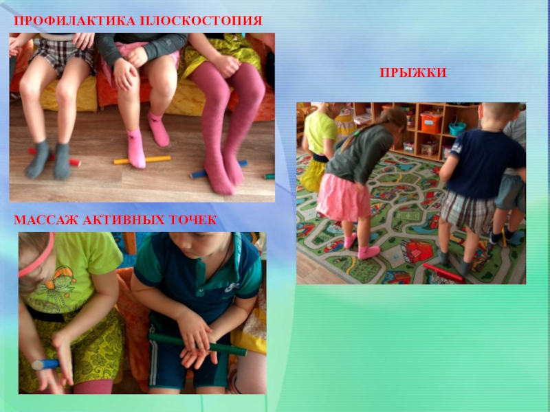 Слайд 50Задачи: способствовать профилактике плоскостопия, массаж стоп. Улучшение кровообращения в пальцах, кистях рук