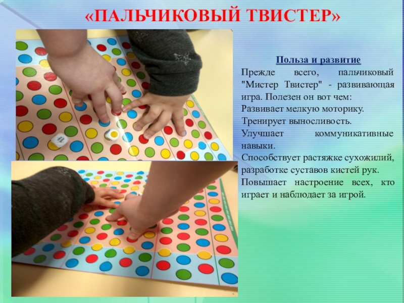 Прежде всего, пальчиковый "Мистер Твистер" - развивающая игра. Полезен