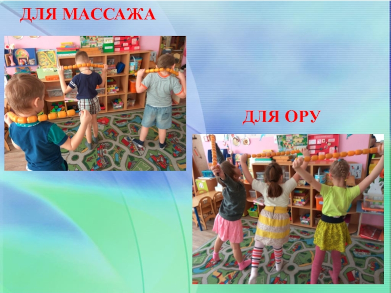 Использование: Дети делают массаж всех частей тела себе и друг дружке.