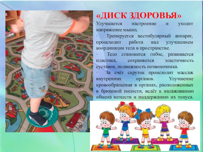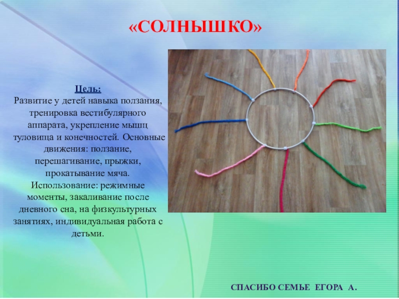 Использование: режимные моменты, закаливание после дневного сна, на физкультурных занятиях, индивидуальная работа с детьми.