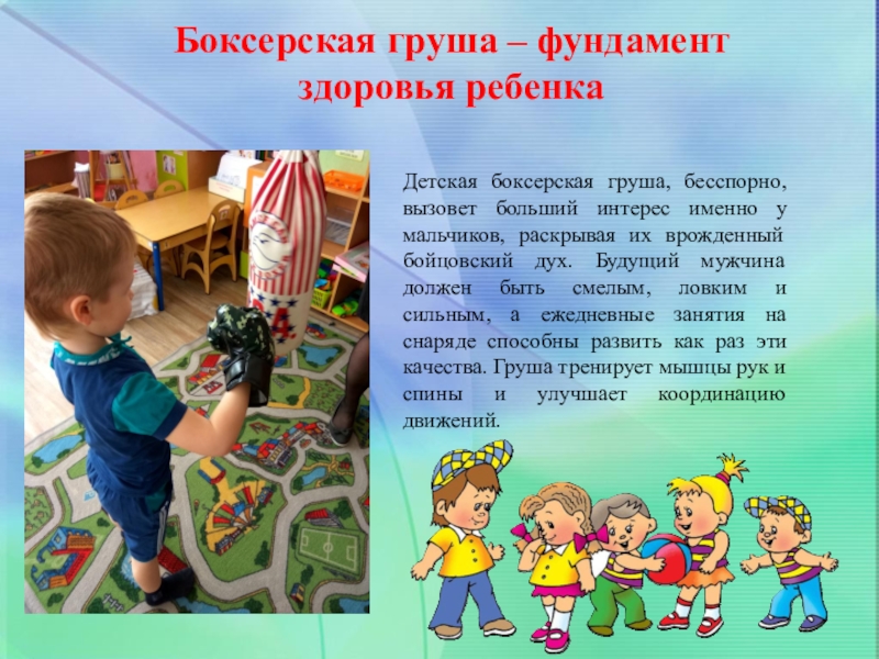 Слайд 44Детская боксерская груша, бесспорно, вызовет больший интерес именно у мальчиков, раскрывая