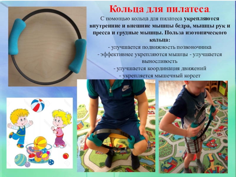 обруч, переброске в парах, подбрасывании вверх и ловли его двумя руками.