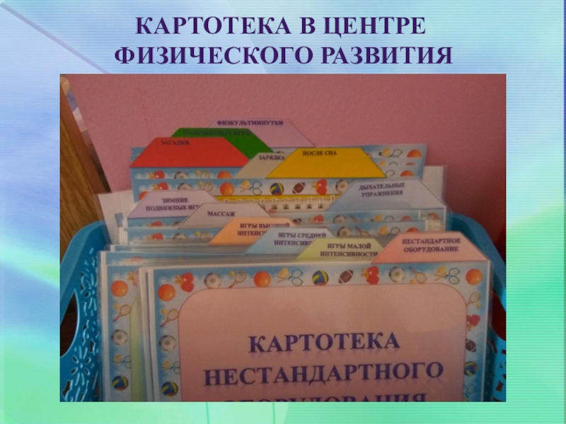 наличие В центре физического развития различного оборудования, материалов, обеспечивает свободный выбор атрибутов для достижения поставленной задачи.