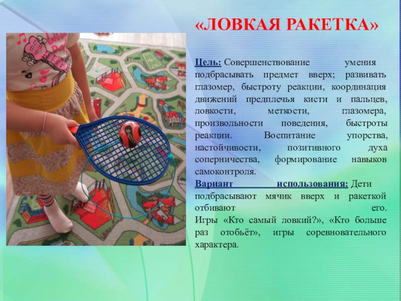 рук, координацию движений, навыков метания, а также в самостоятельной двигательной деятельности.