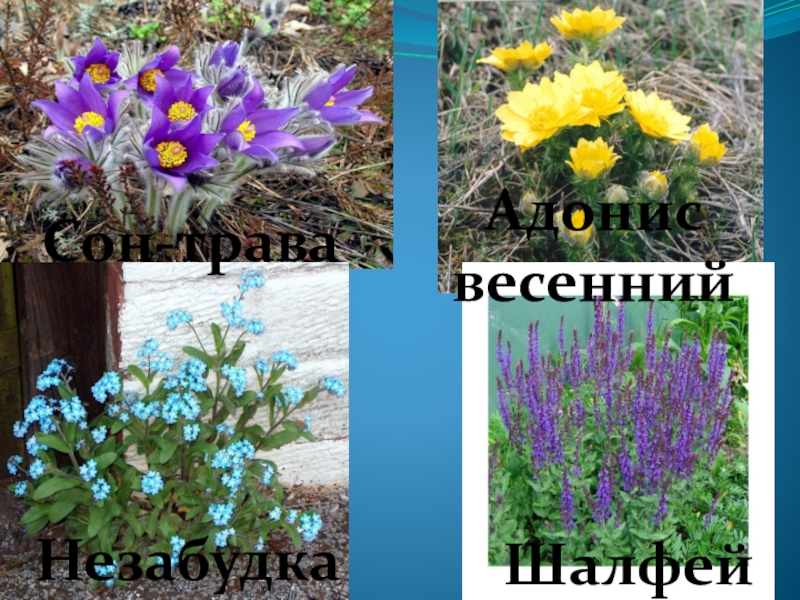 Сон-траваАдонис весеннийНезабудка Шалфей