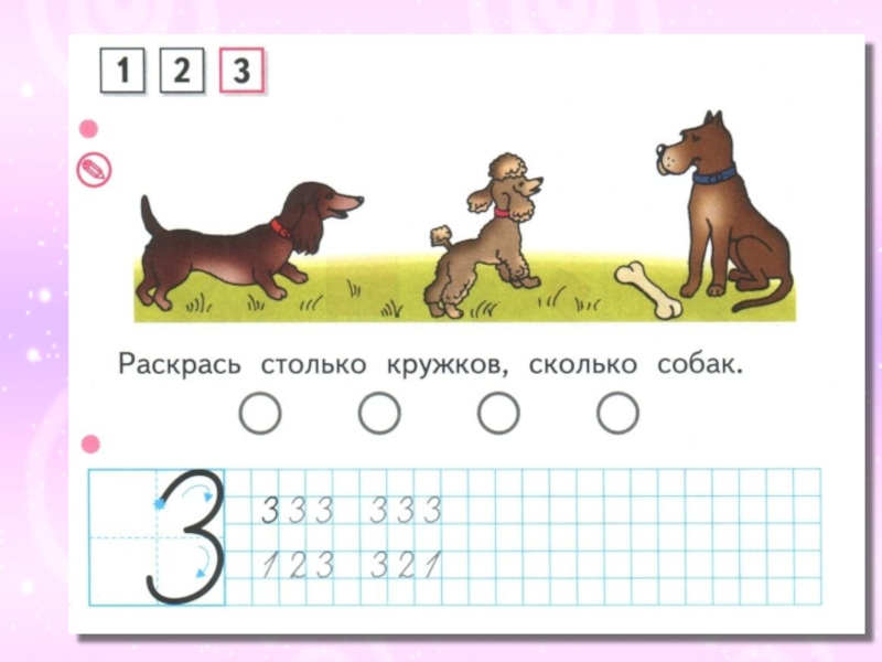 лепестки: Не задерживай руки. Карандаш останови! Получилась цифра три!