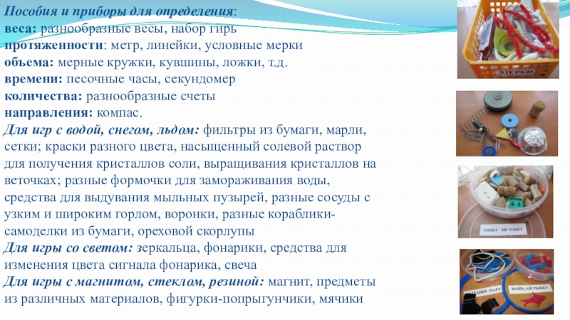 Слайд 12Пособия и приборы для определения: