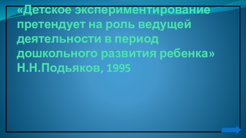Слайд 2«Детское экспериментирование претендует на роль ведущей деятельности в период дошкольного развития