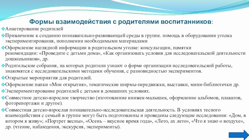 Слайд 17Формы взаимодействия с родителями воспитанников: