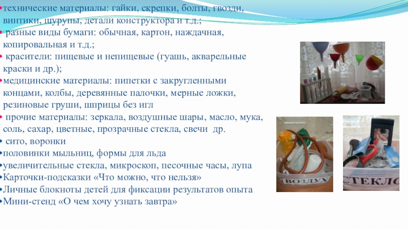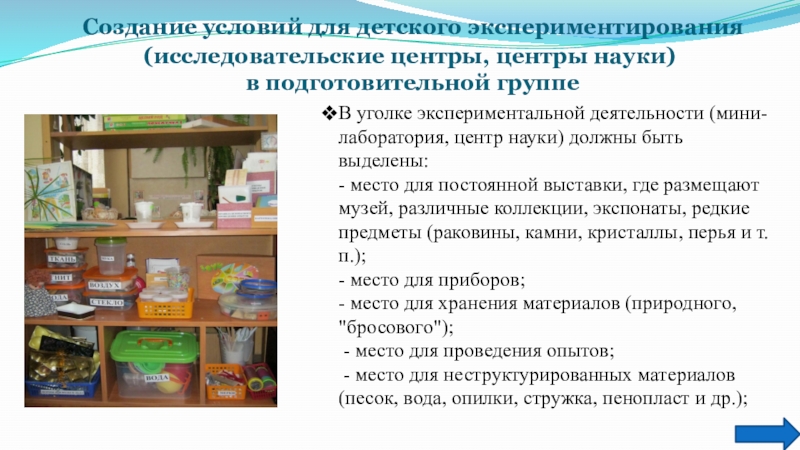 Слайд 9 Создание условий для детского экспериментирования