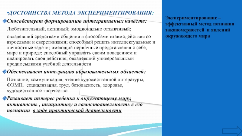 Слайд 3Экспериментирование – эффективный метод познания закономерностей и явлений окружающего мира