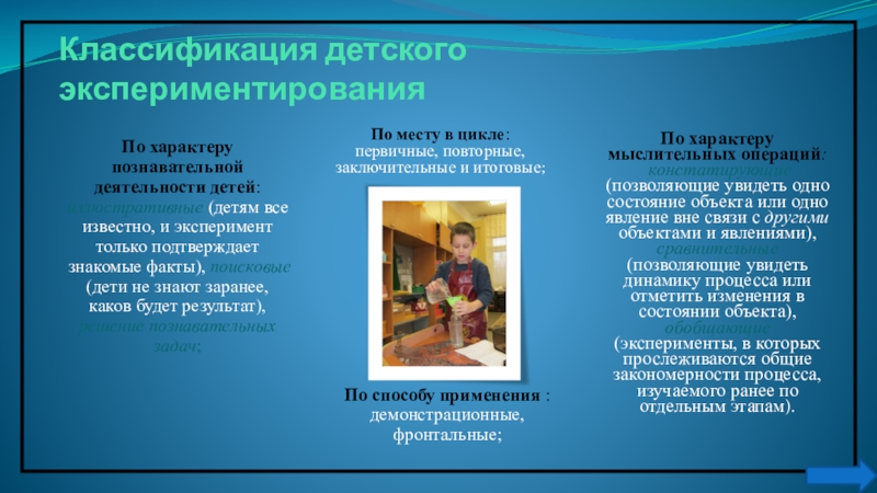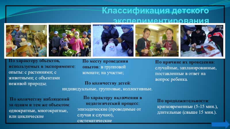 Слайд 6Классификация детского экспериментирования