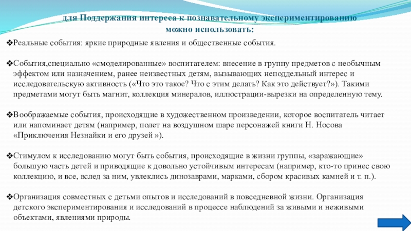 Слайд 16для Поддержания интереса к познавательному экспериментированию можно использовать: