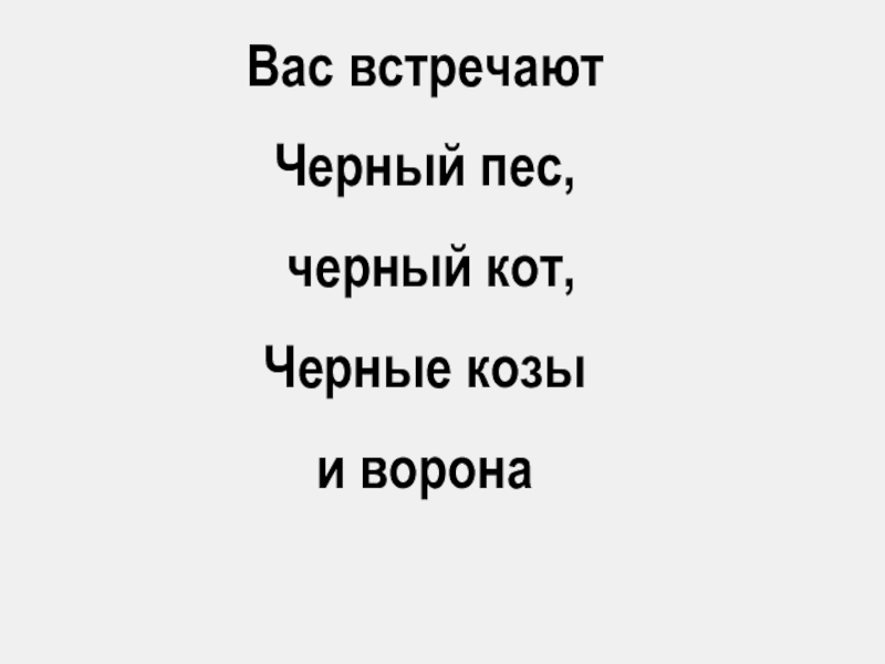 Вас встречаютЧерный пес, черный кот,Черные козыи ворона