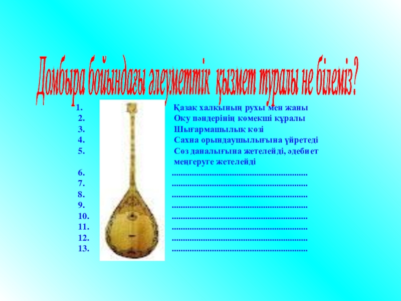 2. Домбыраның көне аспап екендігін ұғындыру.