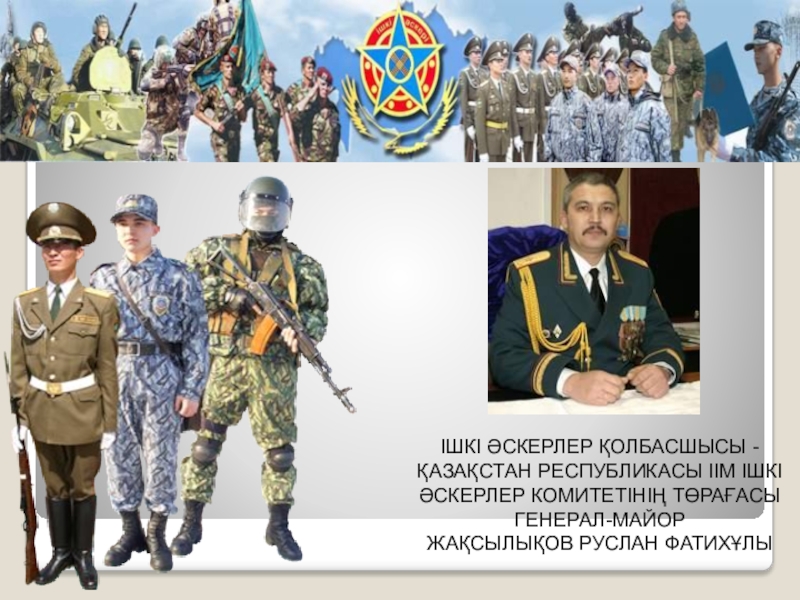 Слайд 22ІШКІ ӘСКЕРЛЕР ҚОЛБАСШЫСЫ - ҚАЗАҚСТАН РЕСПУБЛИКАСЫ ІІМ ІШКІ ӘСКЕРЛЕР КОМИТЕТІНІҢ ТӨРАҒАСЫ