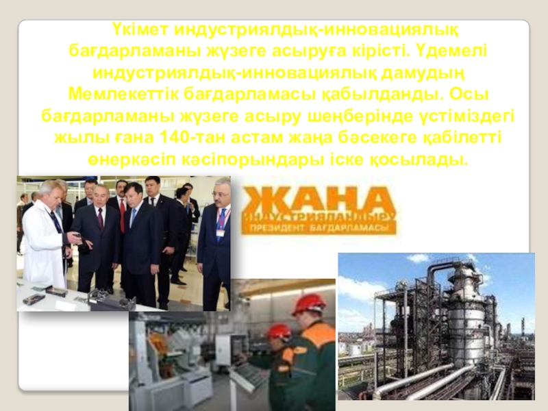 Слайд 57Үкімет индустриялдық-инновациялық бағдарламаны жүзеге асыруға кірісті. Үдемелі индустриялдық-инновациялық дамудың Мемлекеттік бағдарламасы