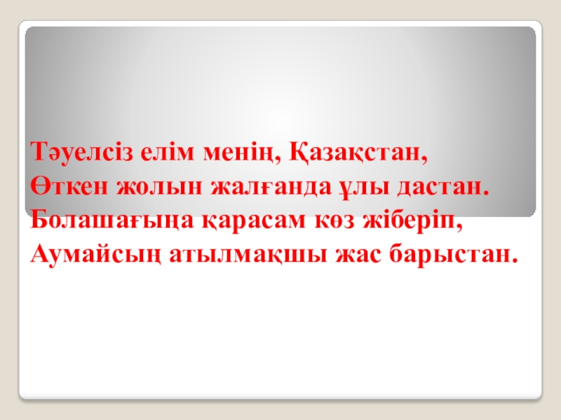 Слайд 61Тәуелсіз елім менің, Қазақстан,