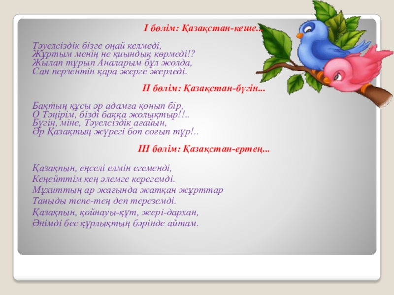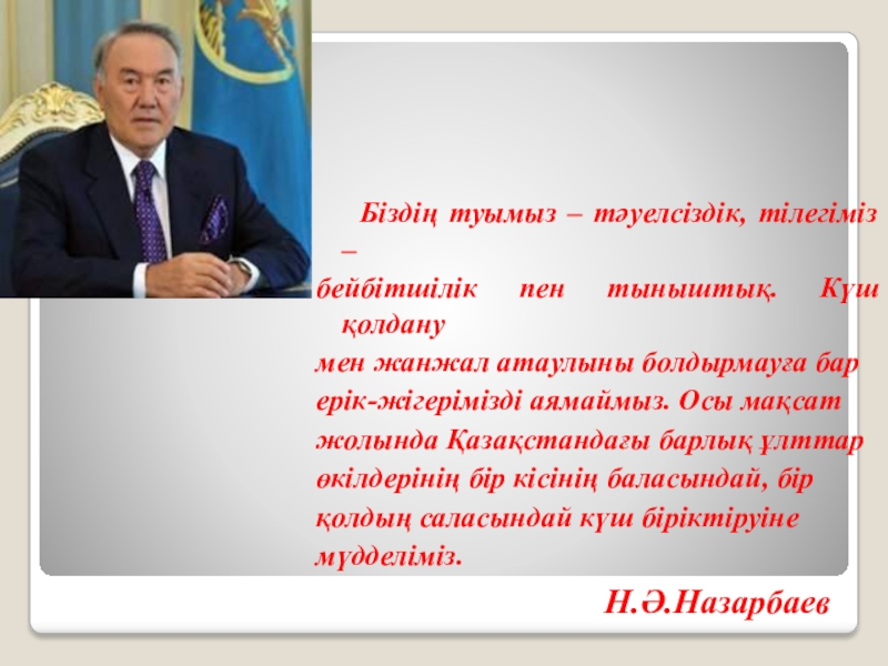 Слайд 4 Біздің туымыз – тәуелсіздік, тілегіміз –