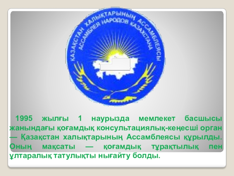 Слайд 311995 жылғы 1 наурызда мемлекет басшысы жанындағы қоғамдық консультациялық-кеңесші орган —