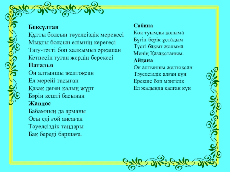 Менің Қазақстаным.