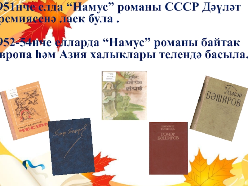 1951нче елда “Намус” романы СССР Дәүләт премиясенә лаек була .