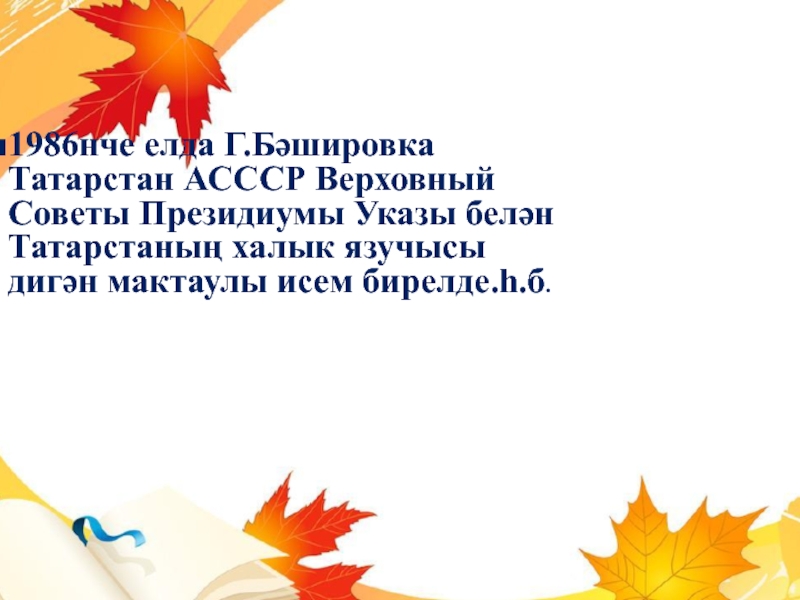 1986нче елда Г.Бәшировка Татарстан АСССР Верховный Советы Президиумы Указы белән Татарстаның