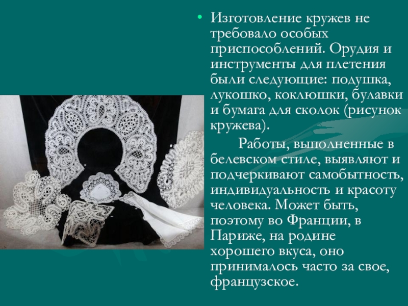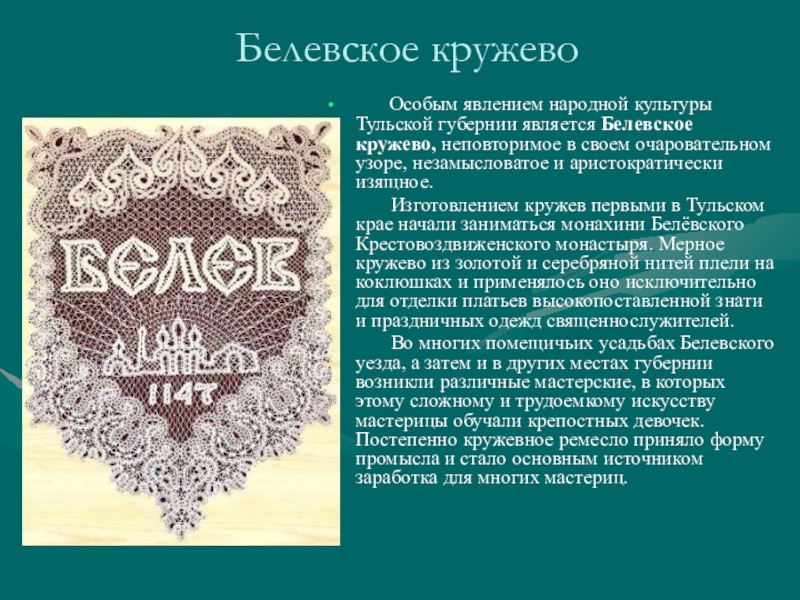 Слайд 9Белевское кружево
