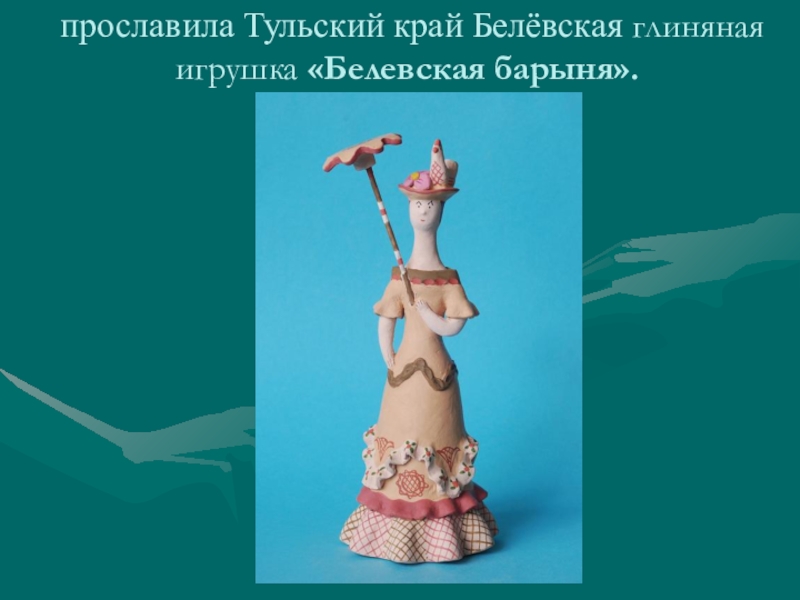 Слайд 7прославила Тульский край Белёвская глиняная игрушка «Белевская барыня».