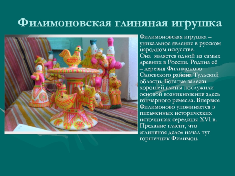 Филимоновская игрушка – уникальное явление в русском народном искусстве.
