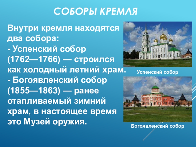 - Башня Водяных ворот — через неё спускался крестный ход на Богоявление для водосвятия;