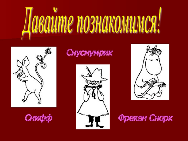 Давайте познакомимся!СниффСнусмумрикФрекен Снорк