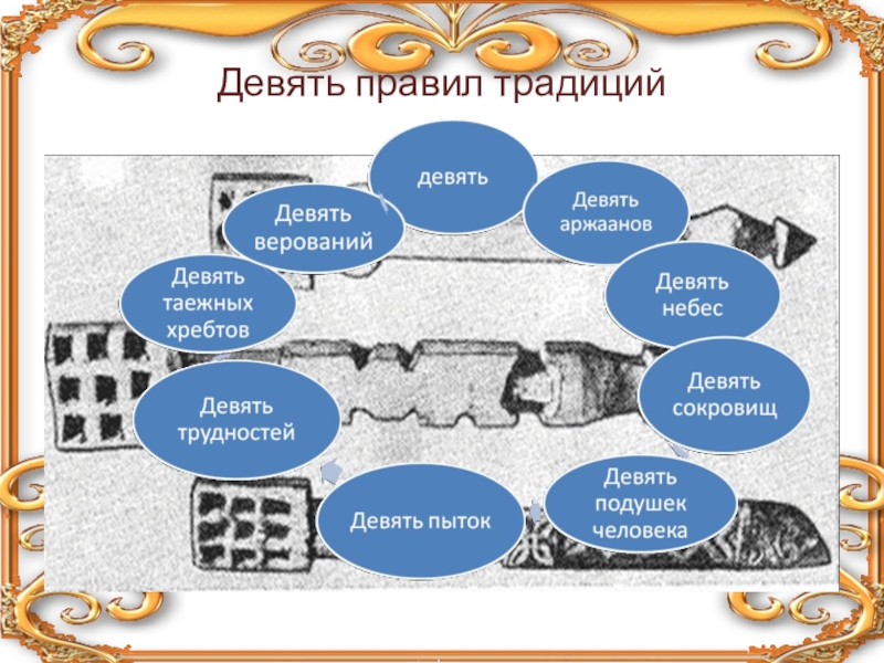 Слайд 8В культуре тюрко-монгольских народов отмечены так называемые бытовые девятки. Так почему