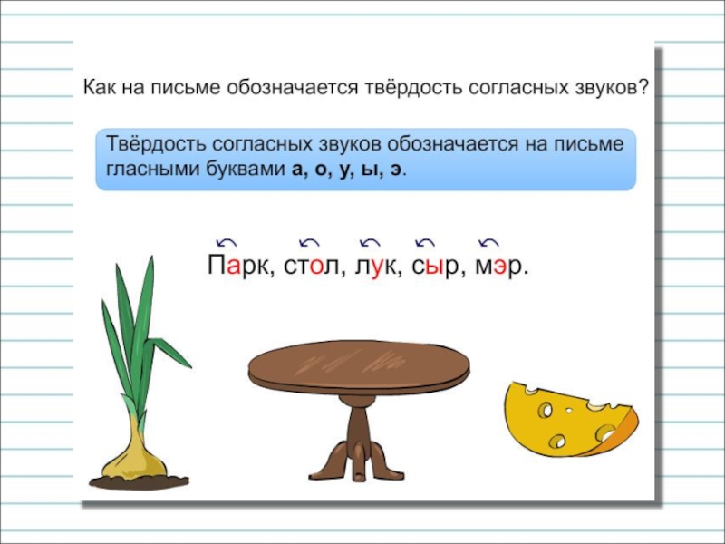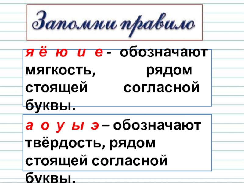 а о у ы э – обозначают твёрдость, рядом стоящей согласной буквы.