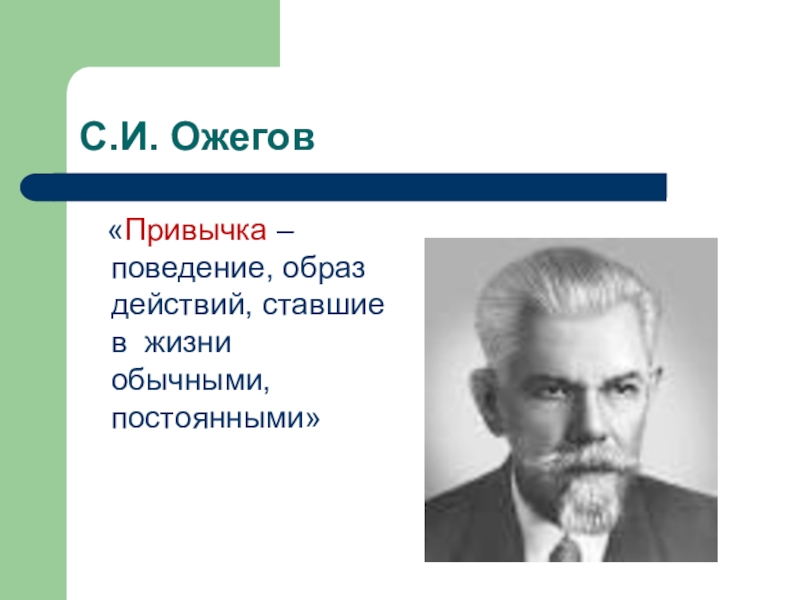 С.И. Ожегов  «Привычка – поведение, образ действий, ставшие в жизни обычными, постоянными»
