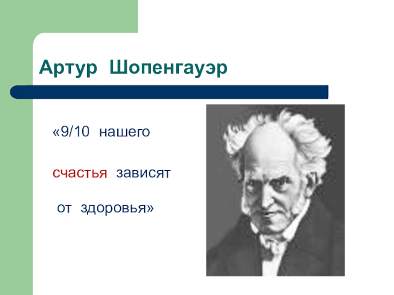 Артур Шопенгауэр «9/10 нашего   счастья зависят   от здоровья»