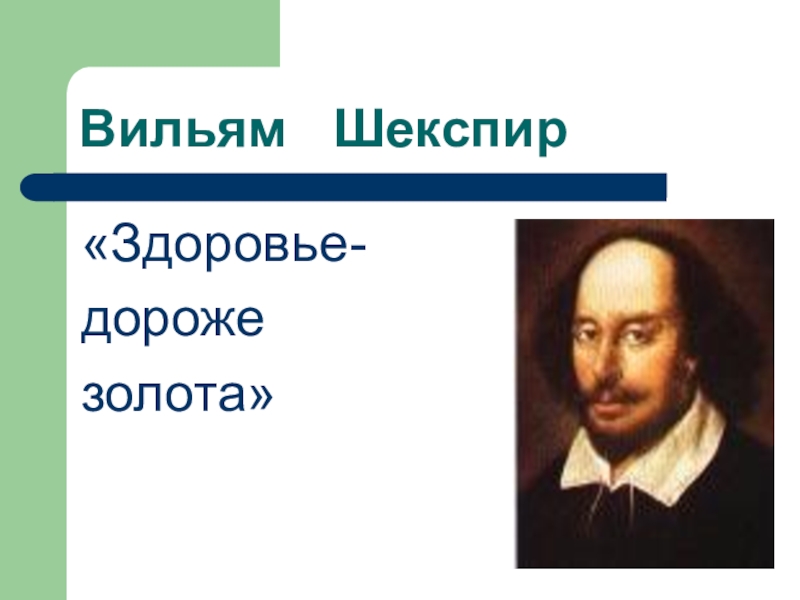 Вильям  Шекспир«Здоровье-дорожезолота»